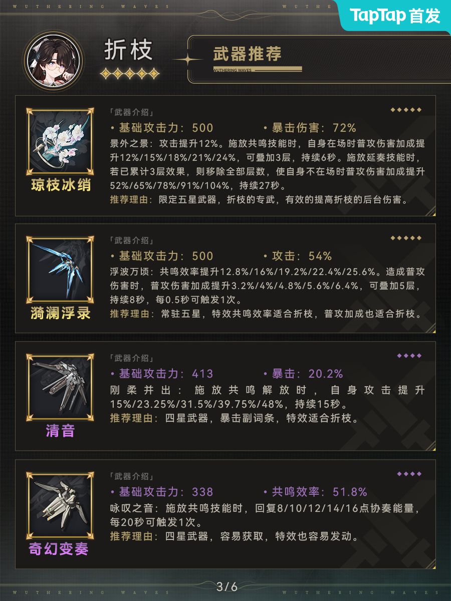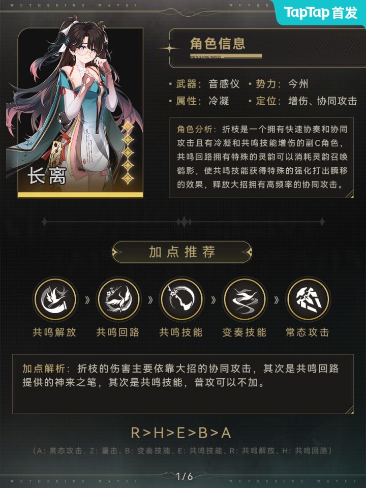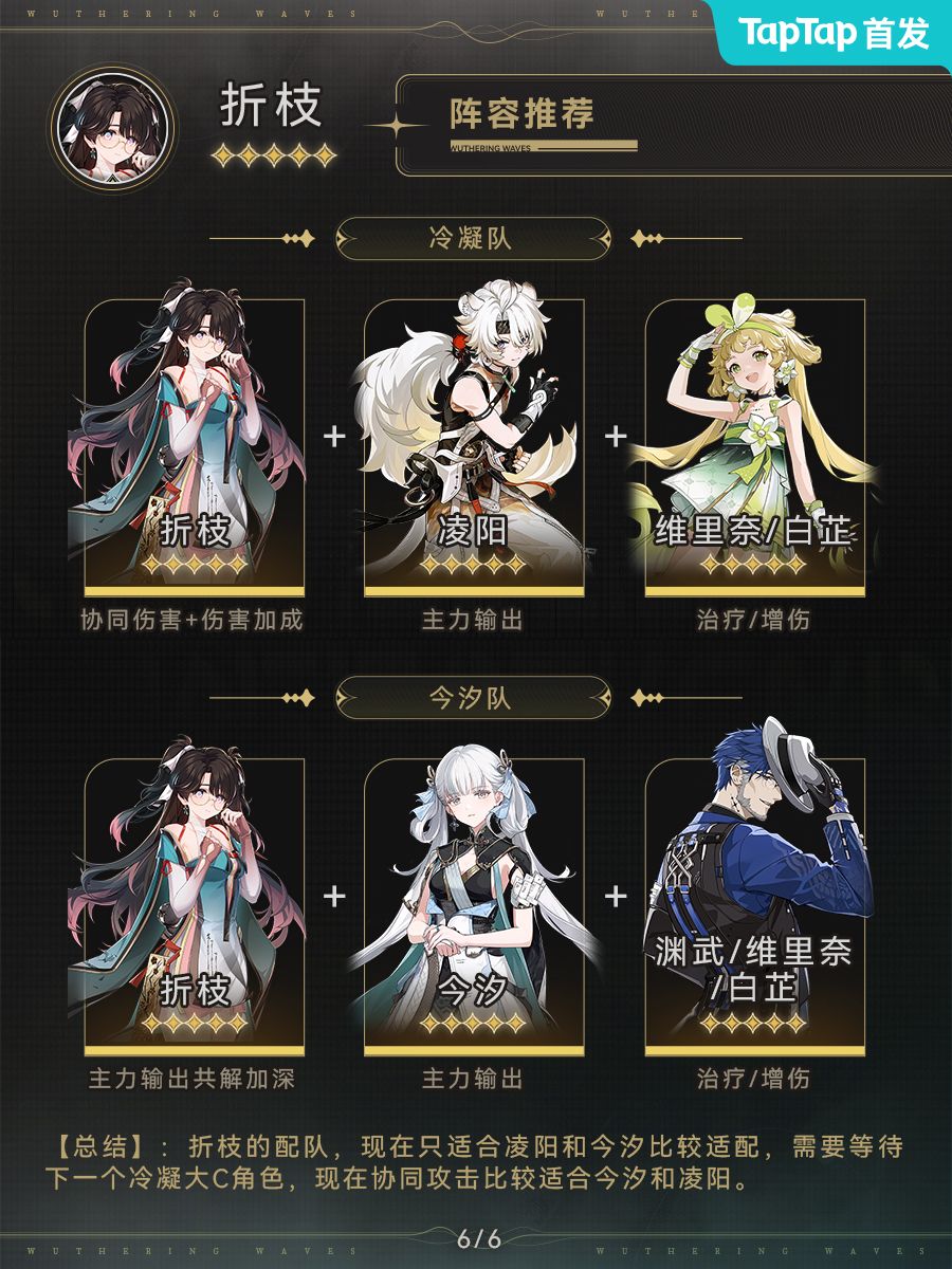 共鸣技能伤害加深效果十分适合1.1版本新出的今汐和长离。因此折枝是一个优秀的副C角色,推荐大家抽取。