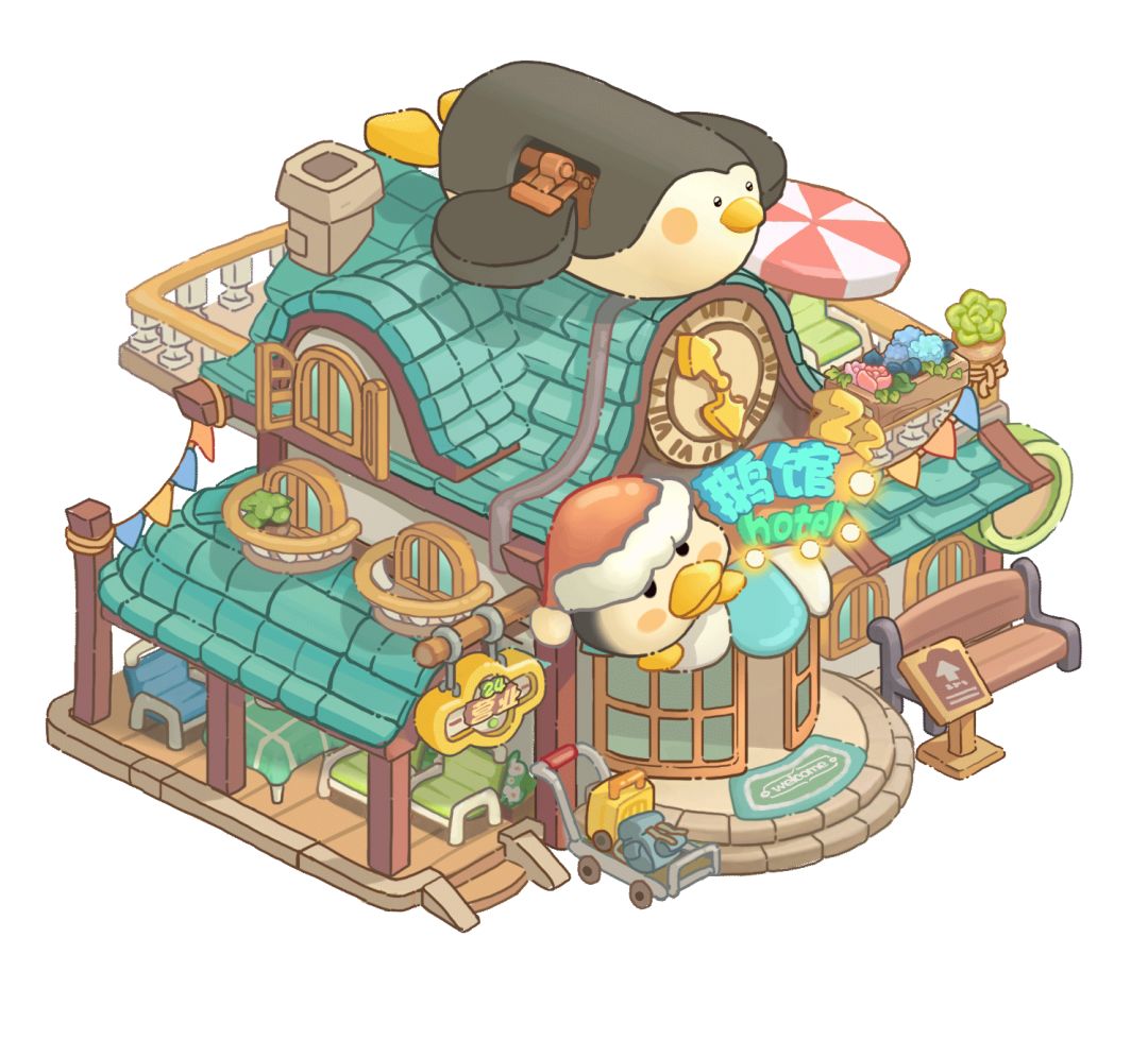 当当当!这就是我们游戏的店铺之飞翔的企鹅旅馆——《鹅馆》~是不是非常可爱呢,飞鸟们已经迫不及待要去海岛旅行啦!~