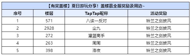 【已开奖】夏日游玩分享!盖楼赢全服奖励及周边~