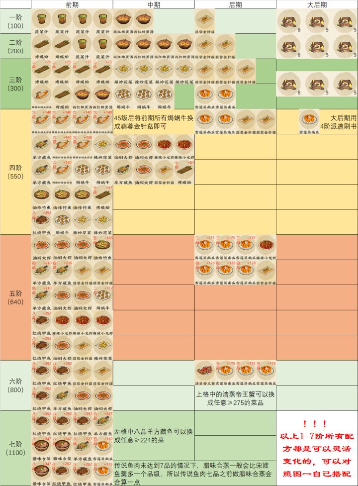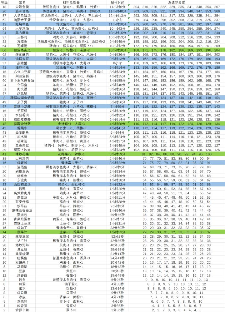 图一是现有菜谱按饱食度排序,标颜色的是个人常用的一些派遣菜