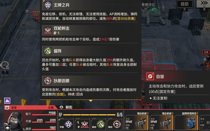 正如上文所说的,boss诺曼会为其他队长提供加持,但这其实还好,最令人头疼的是他的被动“以眼还眼”,受击时对攻击者施加“自旋”,“自旋”的存在使得我们无法使用常规突击手段对其进行攻击,其他攻击手段也容易导致“暴毙”