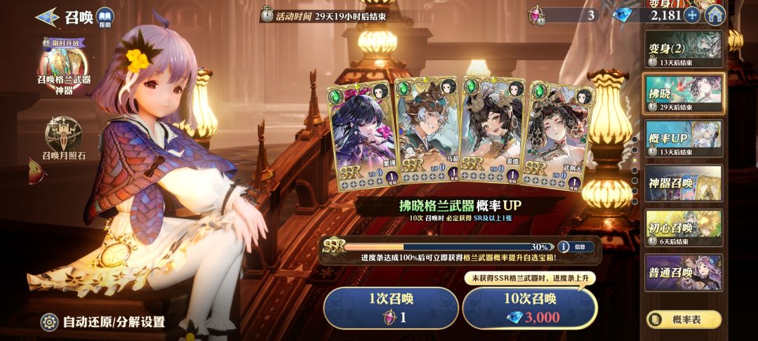 当然如果不抽池子我们还可以免费在两个地方领取到相关SSR!拂晓自带的两个SSR先不说。一个等级达到25就能拿到的