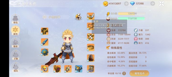 体质--这里的体质挺特殊的,能加血量的同时可以增加闪避和伤害减免,所以就有人尝试全体肉牛。跟boos打个天昏地暗