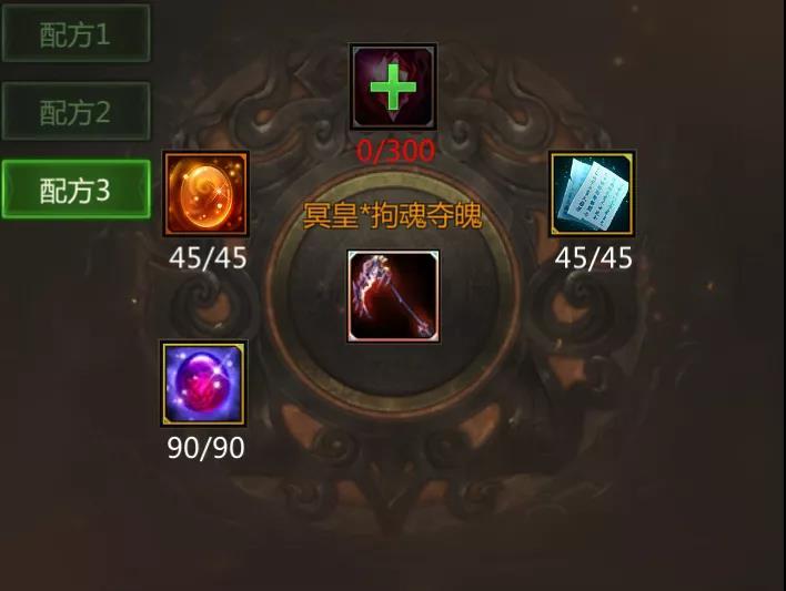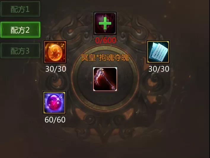 冥皇*拘魂夺魄的合成路径一共拥有三种配方可供选择,大家可以根据需要自行选择合适的合成路径。