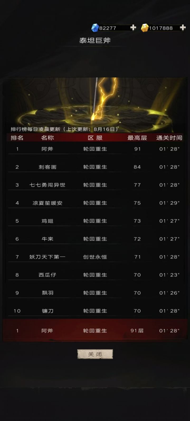 不多废话 庆祝一下 拿下泰坦巨斧榜