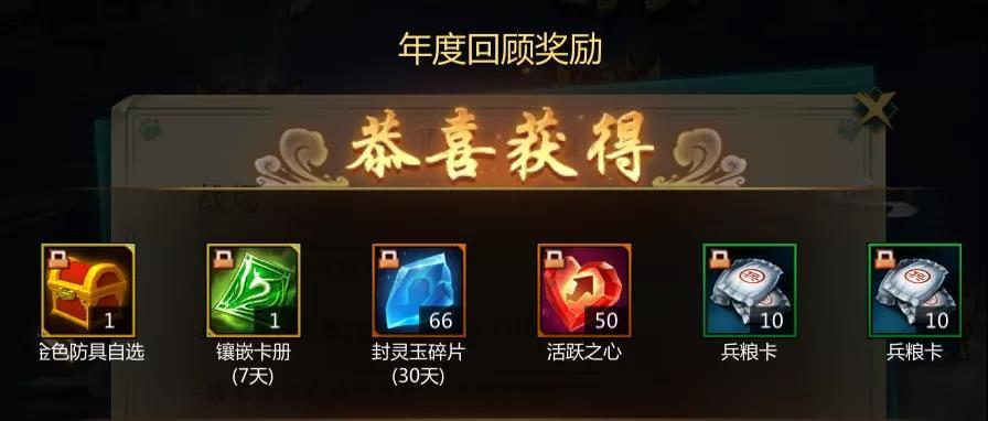 其次,当大家完成周年回顾时,年度回顾奖励中的一章和二章成就卷轴自选包也替换成了兵粮卡。
