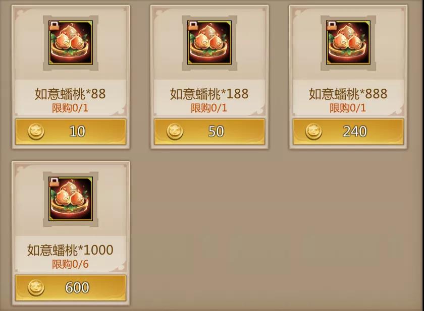 在特惠礼包中,梦梦为大家准备了包含不同数量如意蟠桃的几种礼包,而且价格超值,走过路过千万不能错过!