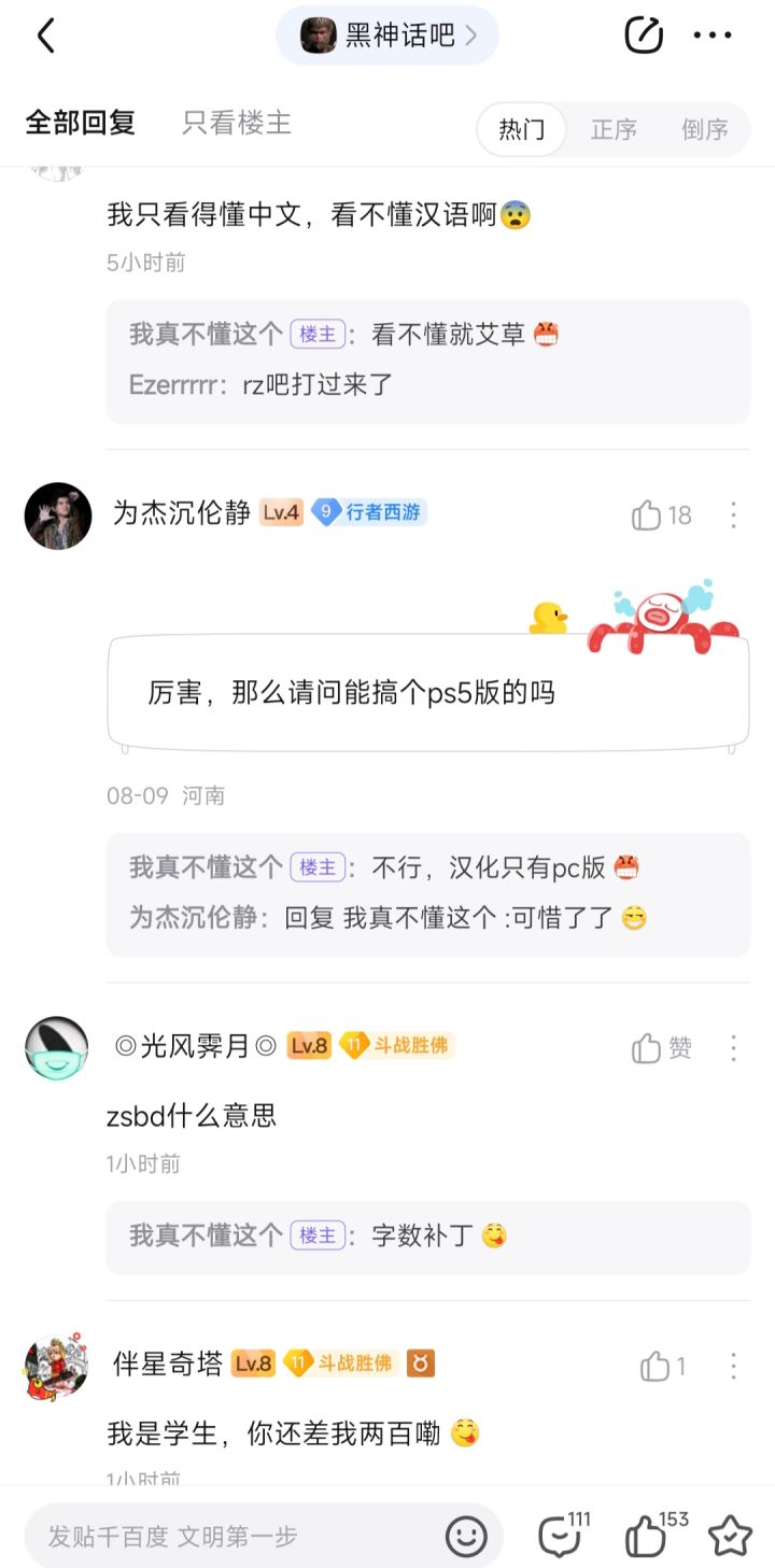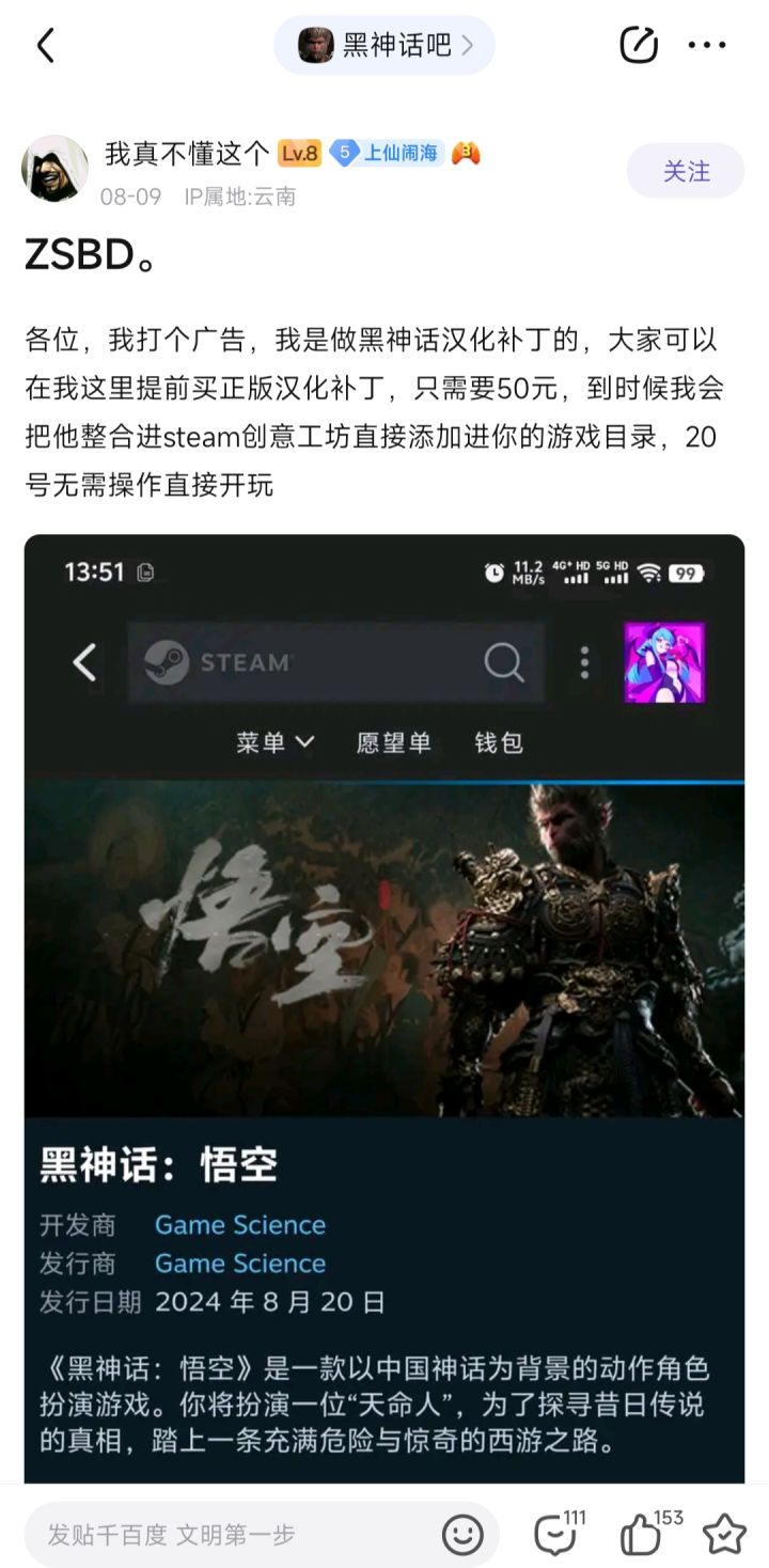 前几天问完黑神话有没有汉化之后,没过几天就有大佬把汉化做出来了,果然好游戏会注重每个玩家的体验,静待20号玩到汉化版的黑神话