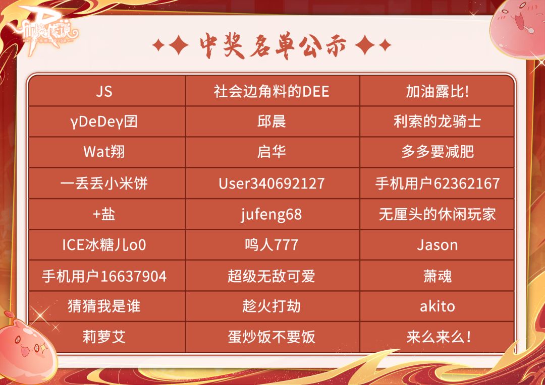 ✦恭喜以下27位冒险者获得【波利盲盒】一只!