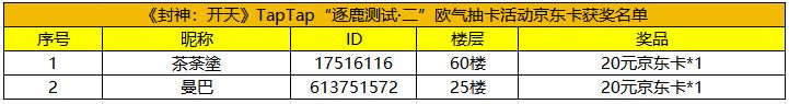也有请获得京东卡奖品的两位将军大人在开奖后的7天内即9月10号之前,加入《封神:开天》玩家交流群:860840777,并私聊噗噗酱提供tap账号截图信息核对和登记奖品寄送信息。