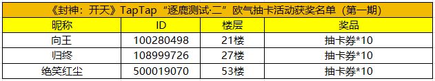 请获奖的将军大人加入《封神:开天》官方Q群 860840777 联系管理员噗噗酱 并提供本帖评论截图和Tap账号ID,便可领取奖励为抽卡券*10的兑换码~