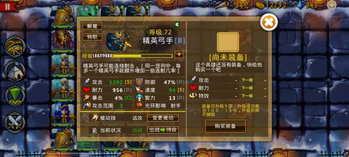 队伍优点:弓团可以享受箭雨的感觉,但是培养成本高,需要团长40级二转后才有战斗力,前期会卡的难受。 但是这个游戏有个捷径,就是用钻石把团长等级速度升上去,可以马上100级满级,然后用18000的金币购买B级士兵,这时候士兵的等级也是100级,这样子就可以速推前几个图了,完成前期的资源积累,这样子就无所谓弓团前期的难受点啦。建议第一排精英弓手抓幸运的攻速暴击S以上,第二排抓远攻。