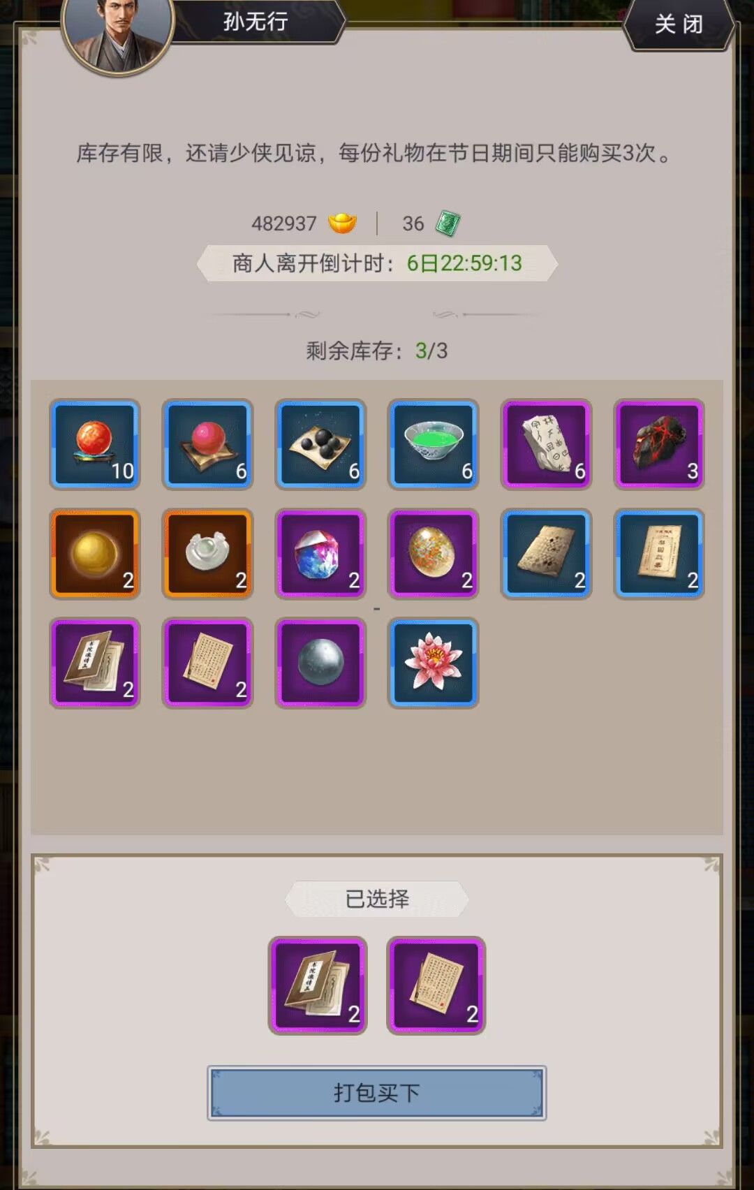 第一层:书院门票和禁地手谕,禁地毕业了可以再换琴门票,六级房缺茶花也可以选