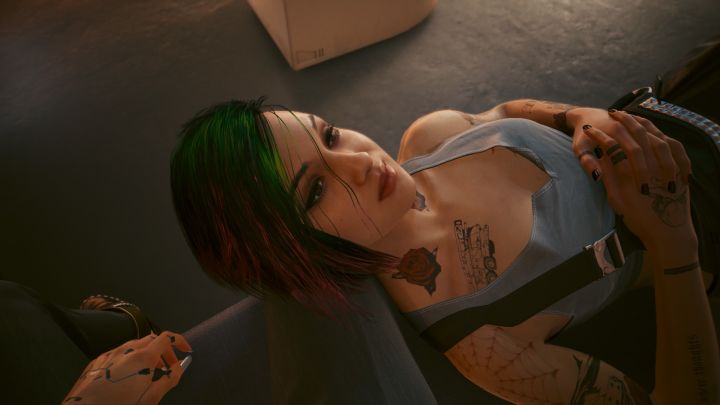 #浅评一下 朱迪·阿尔瓦雷兹,天才超梦体验剪辑师。在艾芙琳·帕克自杀后曾陷入迷茫,随后号召朋友做出反抗云顶高层虎爪帮的举动,当然也付出了相应的代价。在与V的关系进一步发展后,邀请V一起潜水。任务金字塔之歌致敬了Radiohead的歌曲:Pyramid Song,同时朱迪身上的纹身:there was nothing to fear and nothing to doubt也是出自这首歌曲。在潜水声音设备的调教过程中,朱迪哼出旋律的歌曲是Bells of Laguna Bend,同样值得一听。与瓦莱莉共度良宵后,两人确定了情侣关系。朱迪在失去了艾芙琳后,找到了留在夜城新的寄托。如果最后在天台给朱迪通了电话,在太阳结局中,两人一同住进瓦莱莉的别墅;而在星星结局中,朱迪会与瓦莱莉加入流浪者阿德卡多的大家庭;在节制结局中,朱迪担心瓦莱莉的安危,她害怕自己再次失去恋人;而高塔结局就像是节制结局的后续,充满了无奈。朱迪两年没有瓦莱莉的音讯,失去了夜之城唯一的寄托,或许她也曾孤独的等待着,但最终选择离开,去往匹兹堡。或许是时间磨平了女孩的棱角吧,朱迪选择了结婚后稳定的生活,也不愿与瓦莱莉再有瓜葛。朱迪也许就是这样一个敢爱敢恨,情绪化而又害怕孤独的人。高塔结局体验下来,我或许能够理解朱迪选择离开,但拒绝瓦莱莉并匆忙撇清关系挂断电话,多少有点太过绝情。也许,这是夜之城给我们留下的无奈吧