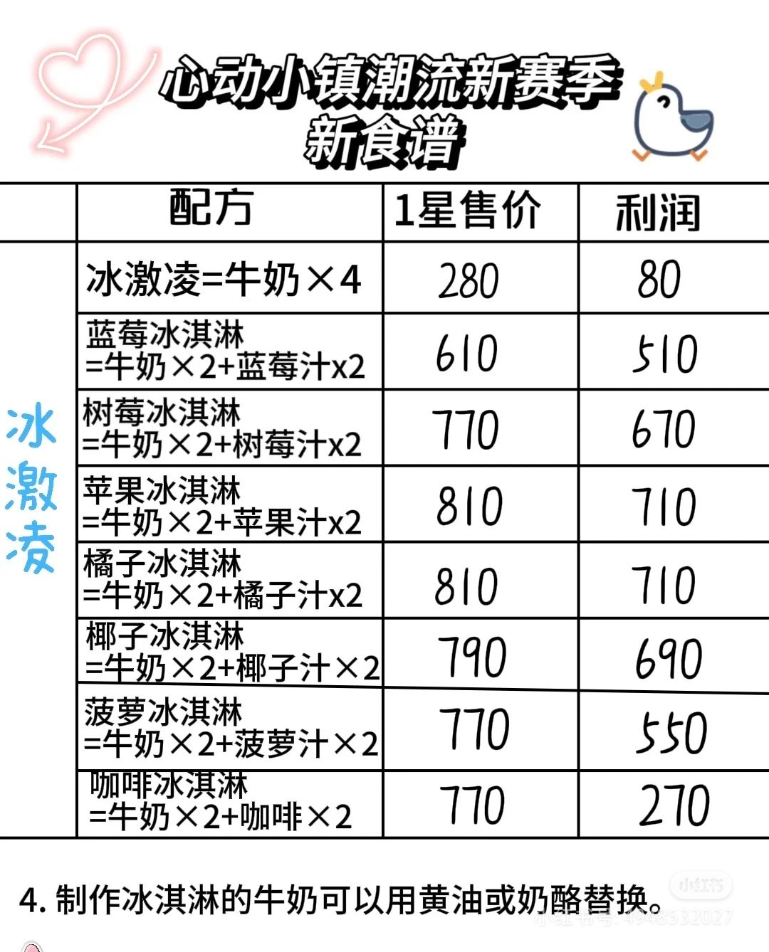 库存的果酱全做椰子水,果子全做汁,不做冰淇淋,因为奶酪100黄油150,牛奶做提拉米苏下午茶更赚钱。