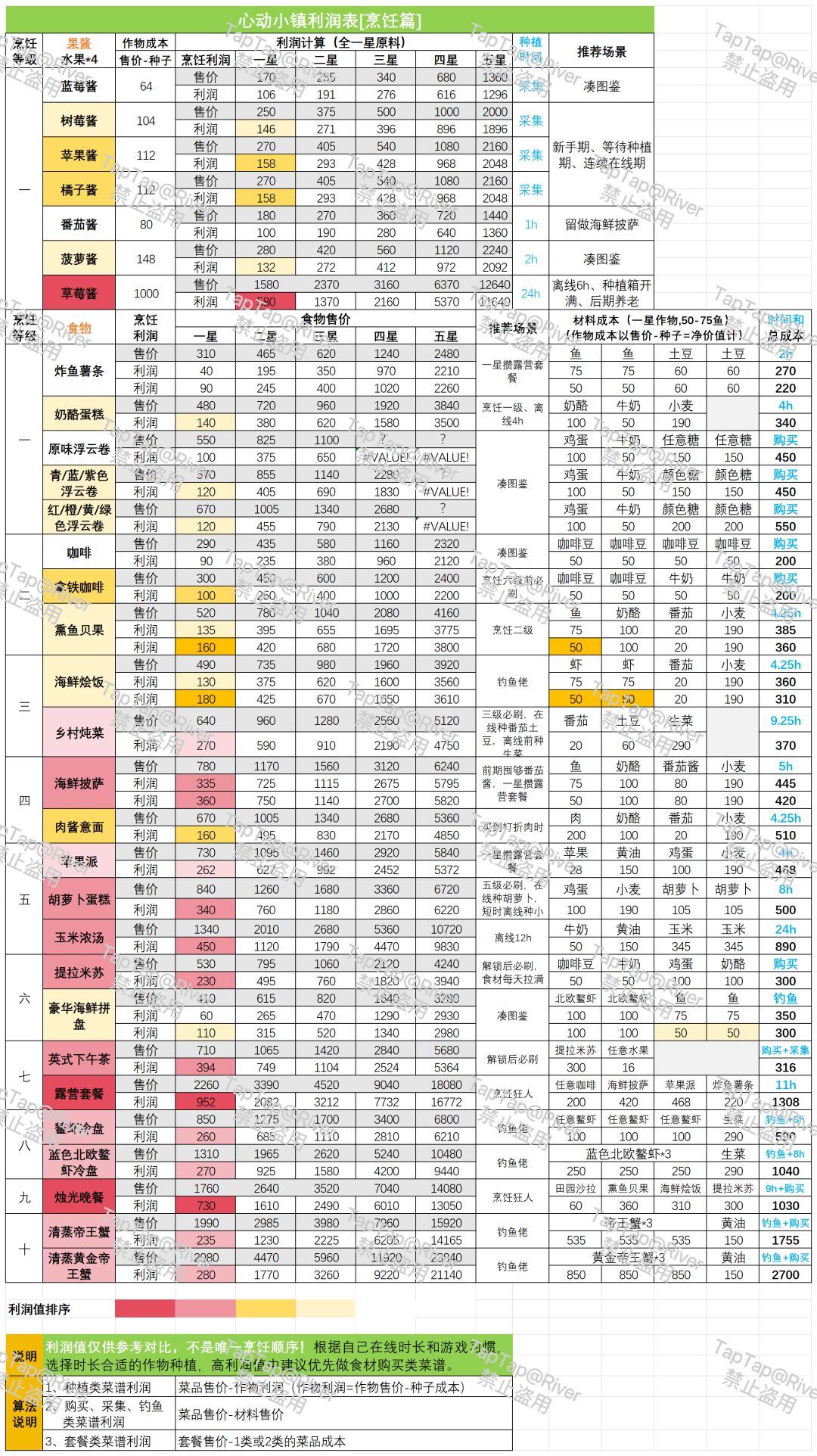 潮流季烹饪利润总结,必看