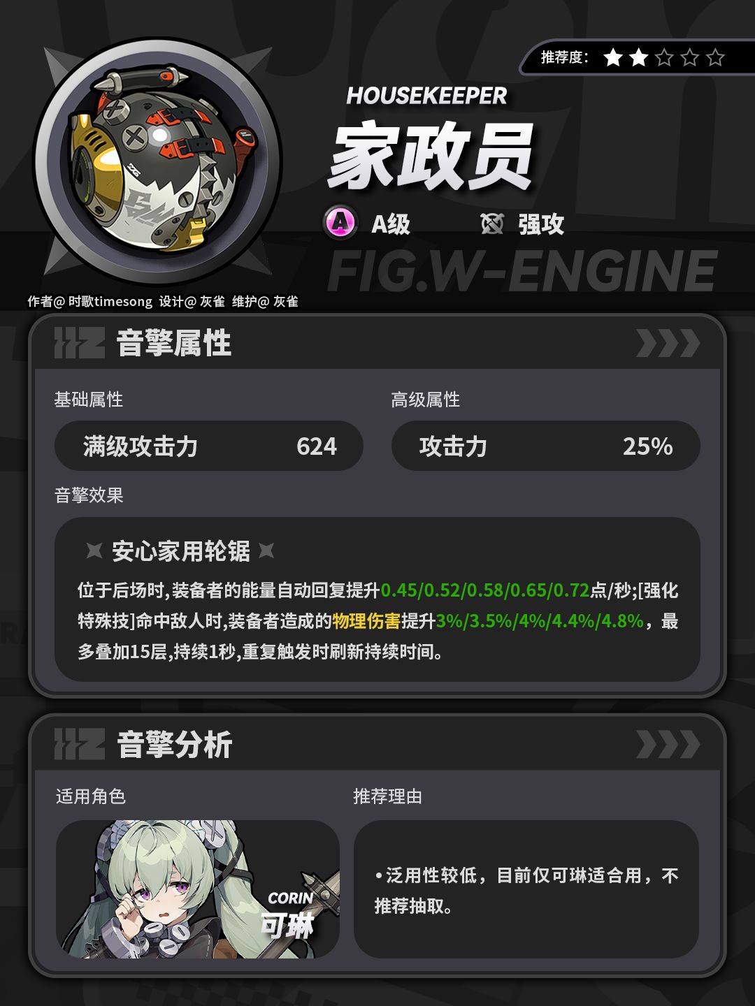 该音擎同样具有不错的泛用性,冲击力主词条击破角色基本都有收益,武器效果全队增伤所有主C都能吃。