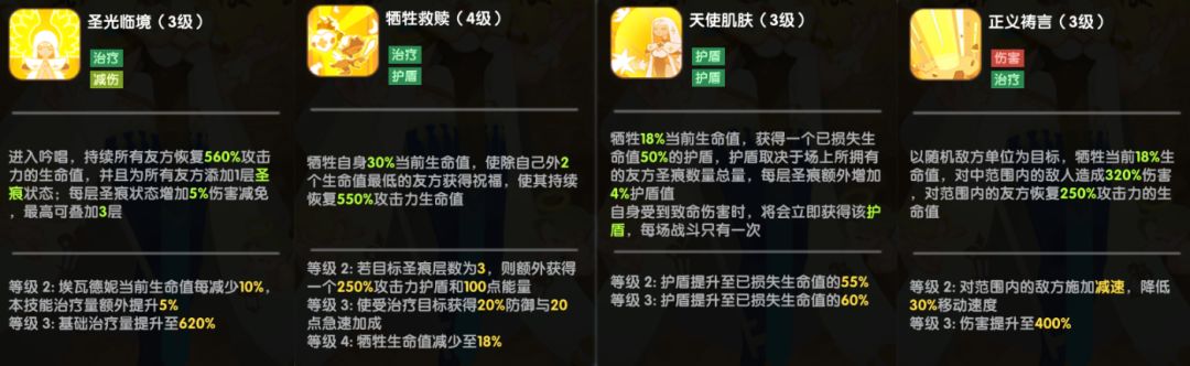 3技能 天使肌肤:牺牲百分比当前生命值获得百分比已损生命值护盾,附带一次紧急护盾