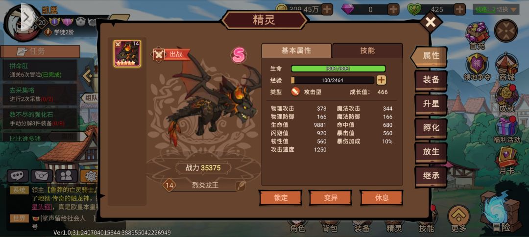 这样差不多已经是巅峰了,想继续追极致只能通过高鉴定高改造高强化高龙影来实现,还有钓鱼也能提升属性,刚出的功能我没研究不太清楚。越往后提升越难消费越高,各位大佬量力而行。