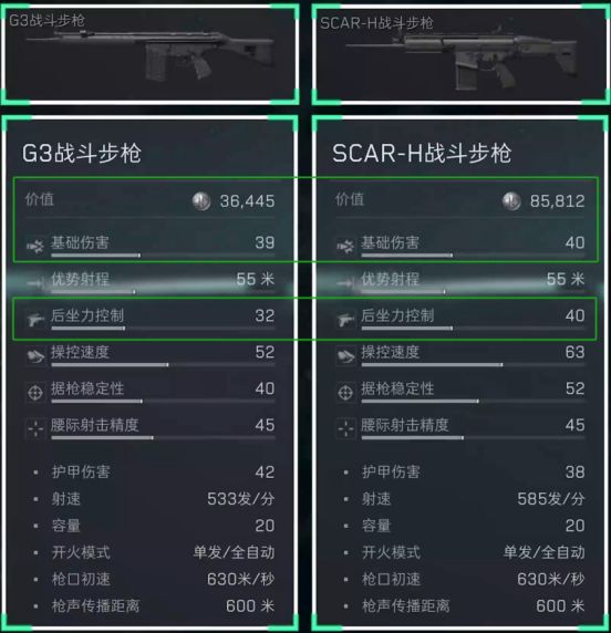 SCAR-H战斗步枪虽然在护甲伤害方面低于G3战斗步枪,但其整体操控属性更强,射击稳定性也更高,并且可改装空间更大,能适用于多种战斗场景。
