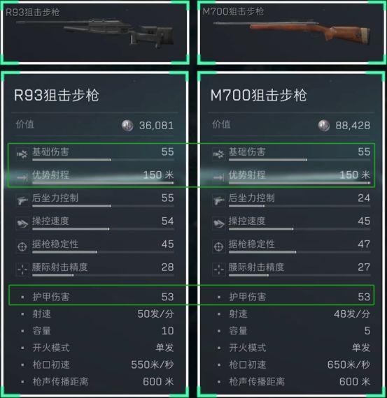 作为7.62x51mm弹药适用的两把狙击步枪,R93狙击步枪和M700狙击步枪,无论是优势射程还是基础伤害与护甲伤害,都旗鼓相当。