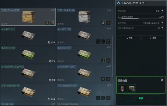 其中7.62x51mm BPZ是3级弹药,可在交易行购买,行动等级达到10级时也可以在战术部门用平时搜索易得的私密笔记簿和酒店宣传海报进行兑换。