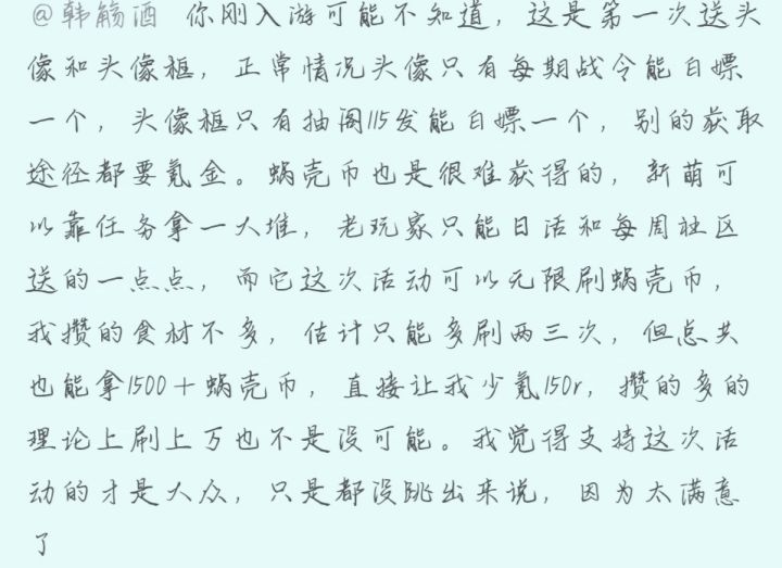 上图是我在一个贴主评论的评论里留言,一位玩家和我讨论的评论(不是挂人所以没有截名称头像),就是好奇有多少人满意这个活动