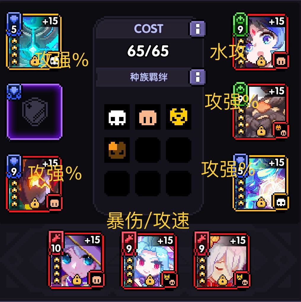 暗夜的大量伤害加深效果大大稀释樱冲,因此选择乱花来弥补2阶气功羁绊技伤加成不足的短板。
