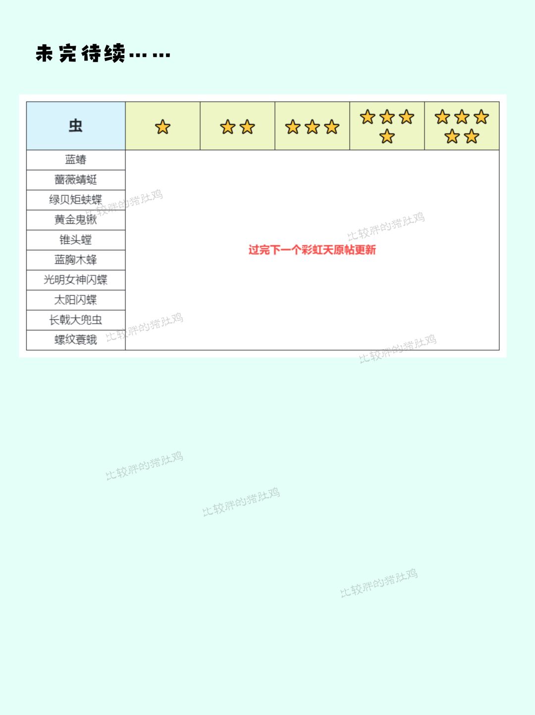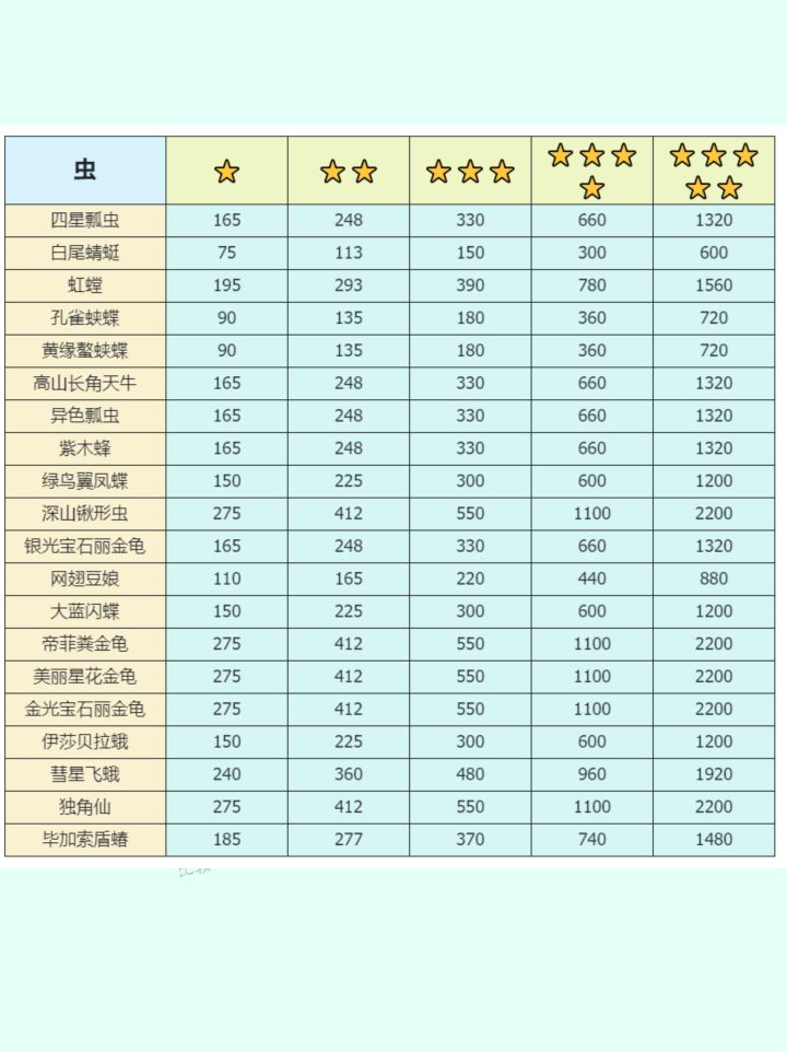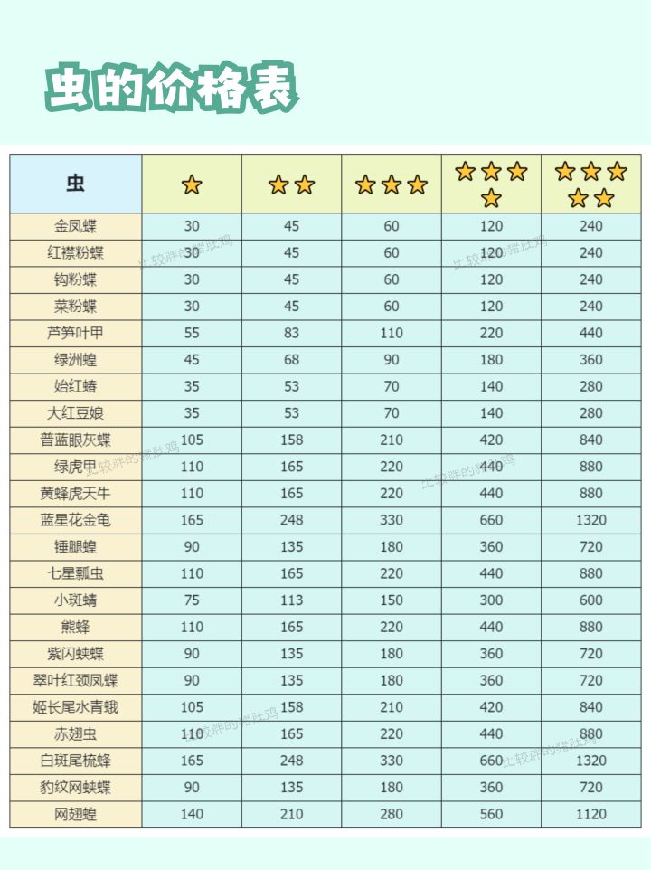 捕虫tips:1.目前捕虫是没有一些例如诱鱼器之类的道具的,需要到处找,特别是前期高星概率低,所以单论经济效益一般(后期也有贵的),但是大扑棱蛾子尊嘟很美丽