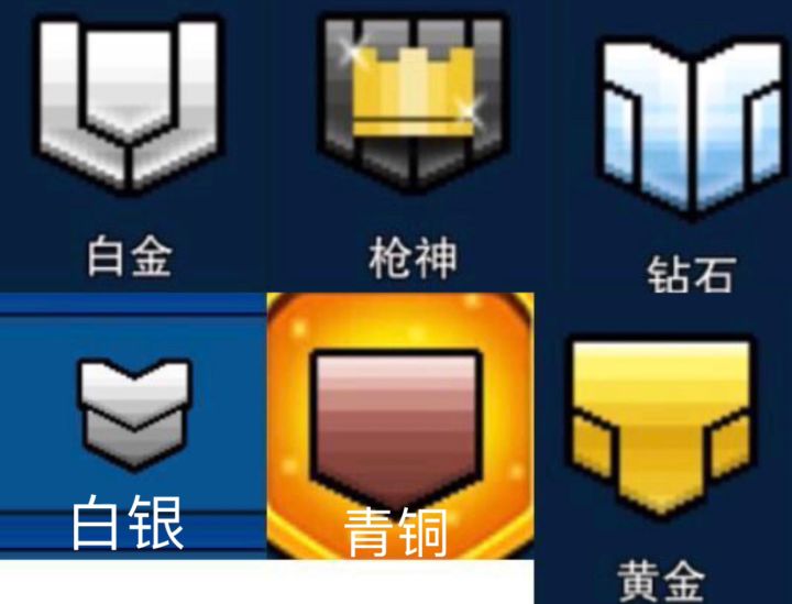 赛季模式中,总共有六个段位,即青铜、白银黄金、白金、钻石、枪神(如图1)。