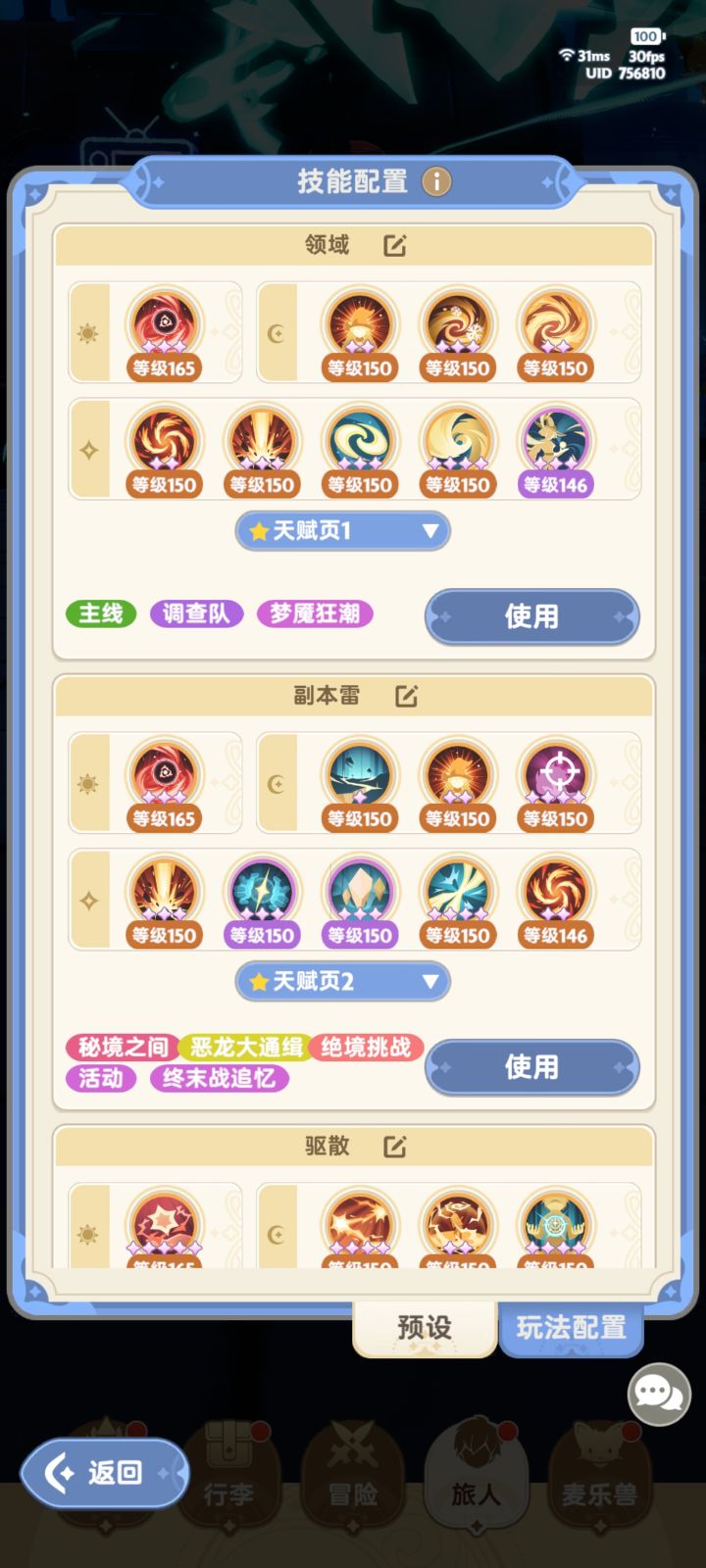 图4 天赋混沌学派,领域流走左,核心流走右。副天赋冷却+技巧,两个流派一样。[补充:如果技能都在4紫星以上,冷却换成爆伤