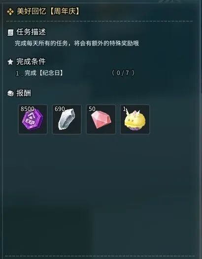 完成7日周年庆每日任务后可获得三周年限定款背饰