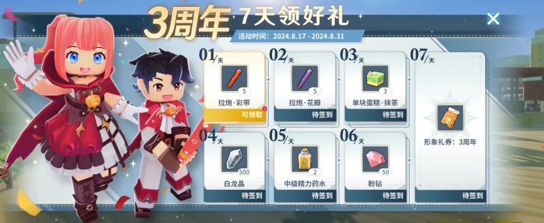完成7日签到之后可以领取3周年限定头像哦~