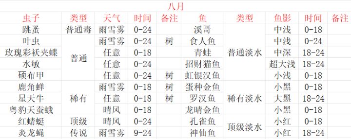 仙山小农八月新虫鱼攻略更新完成