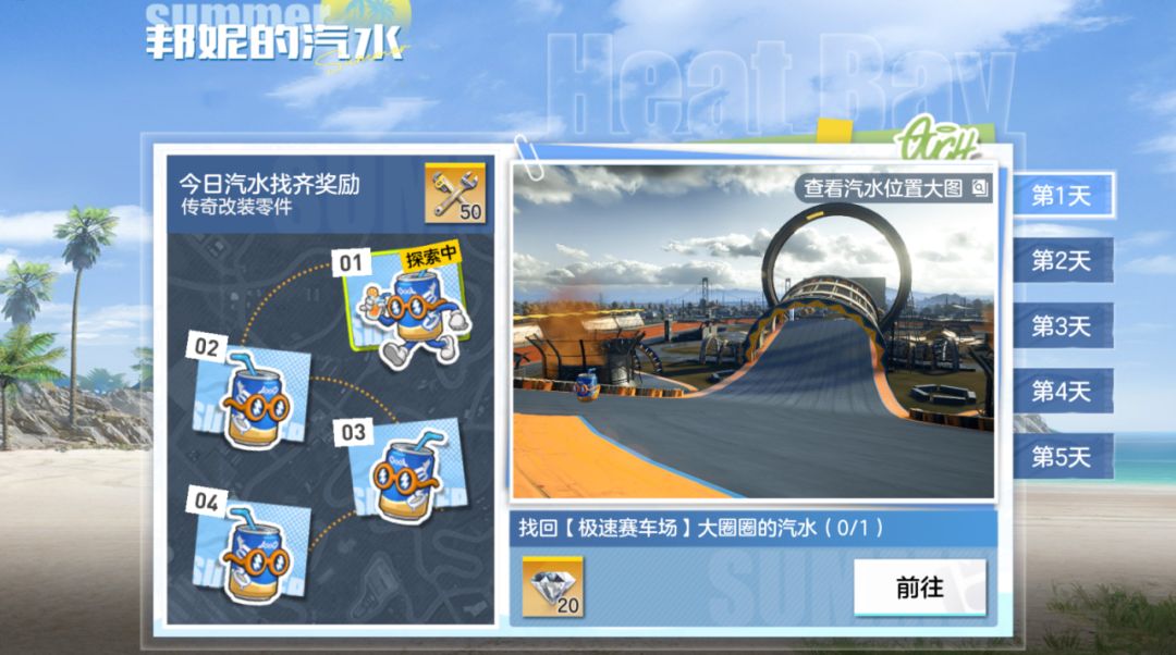 快跟着图画指引,寻找丢失在热湾角落的蓝莓汽水吧!请放心,我有准备礼物感谢热心的赛车手哦!