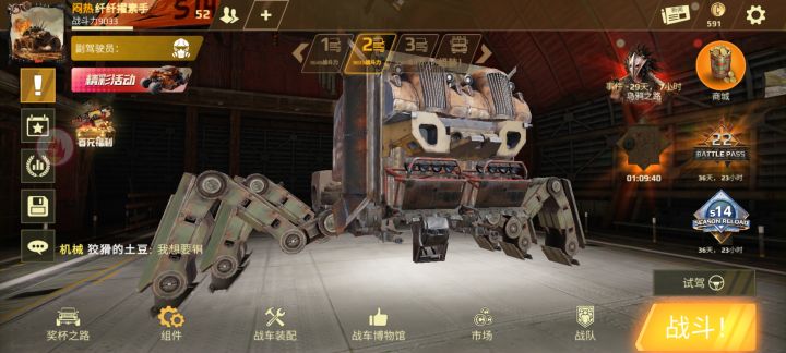 铁头娃3号把武器放下面,就能顶住至少两波火力霰弹枪就能接近目标,开启卡车司机的减伤技能(减伤百分之50)冲过去先拆对面的轮胎和腿,绕着对面转圈打,他大炮转圈慢就可以玩弄他了,武器链接座舱,对面把其他部件打掉了武器也不会掉,而且也打不到武器,因为座舱会先吸收伤害。
