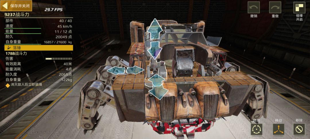很多憨憨只会傻傻的把武器放车头上面,被对面带有爆炸伤害的武器打到就废了,我的铁头娃1号2号就是放在一起,对面三四炮就给我武器打没了。