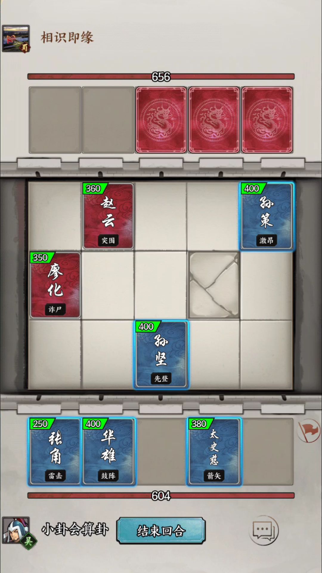 两抽在别的游戏里只能得到“谢谢惠顾”,在这里,直接给你爆两英雄——我爆了“甄姬”和“黄忠”,可惜没啥用,因为我选的是吴国,只能用吴国群国来打架,其他两国牌太少了,用了不合算。