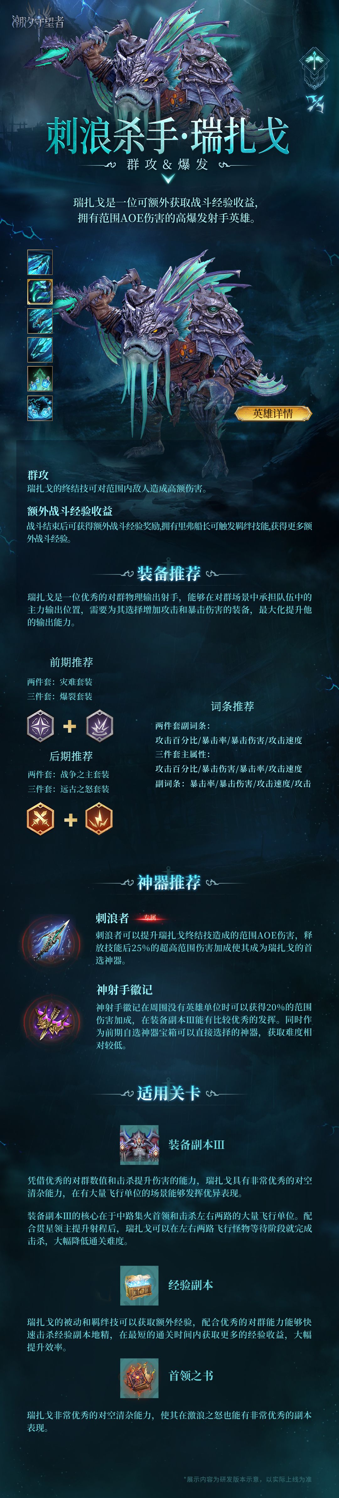 瑞扎戈是一位可额外获取战斗经验收益,拥有范围AOE伤害的高爆发射手英雄。