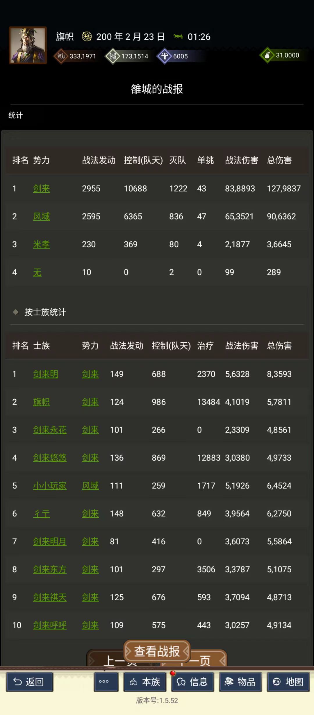 本赛季落【巴地】与大风部分士族撞车,打退部分大风士族,后大风前往秦地与天域在秦地合盟,改名【风域】,决定200年决战;