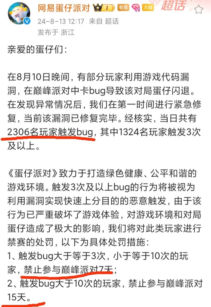 巅峰派对违规玩家的处罚太轻,引发了大家不满,对此表示道歉❗❗❗