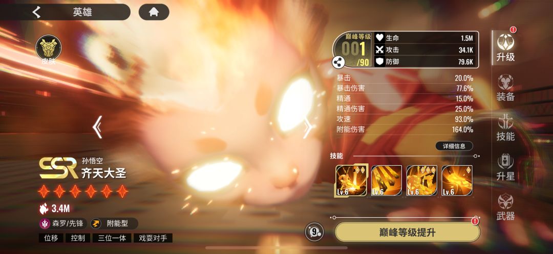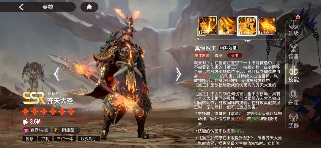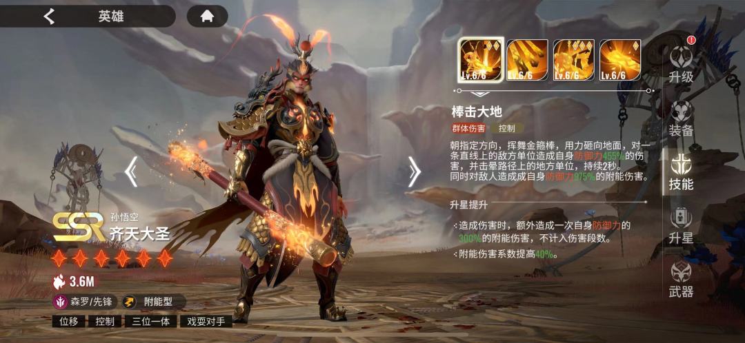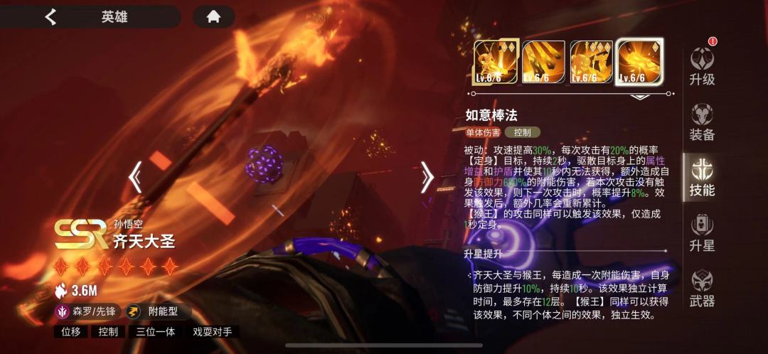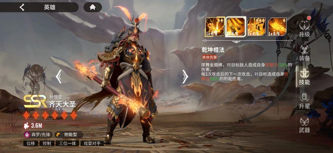 我们先来看角色定位及技能介绍,先锋,赋能型(看到赋能型大家心里估计咯噔一下,想起被杨戬不出色表现支配的恐惧,但我要说的是,你杨戬跟我大圣碰,你有那个实力吗)