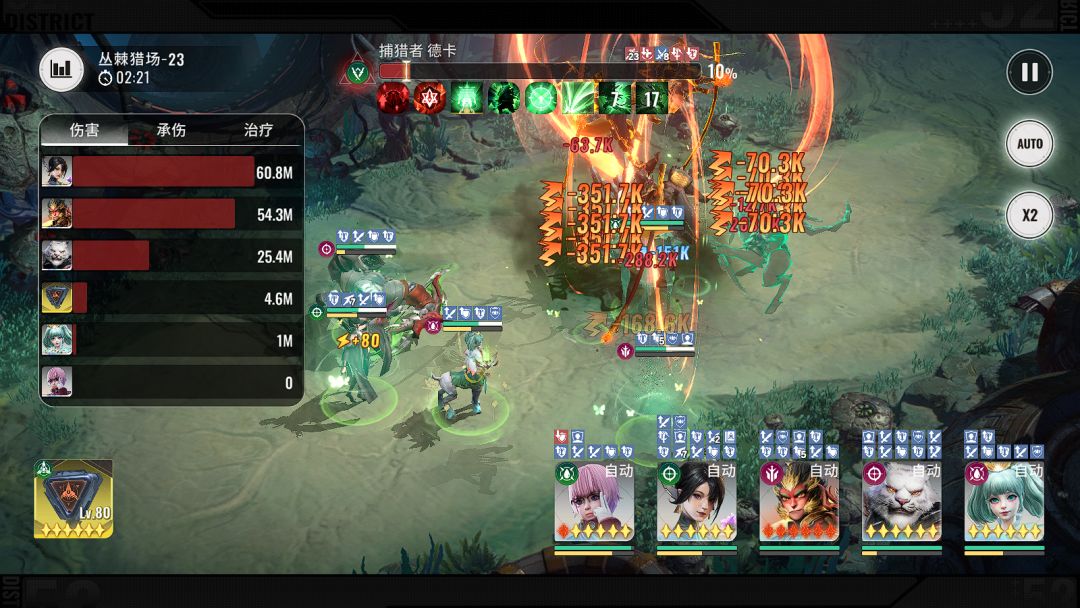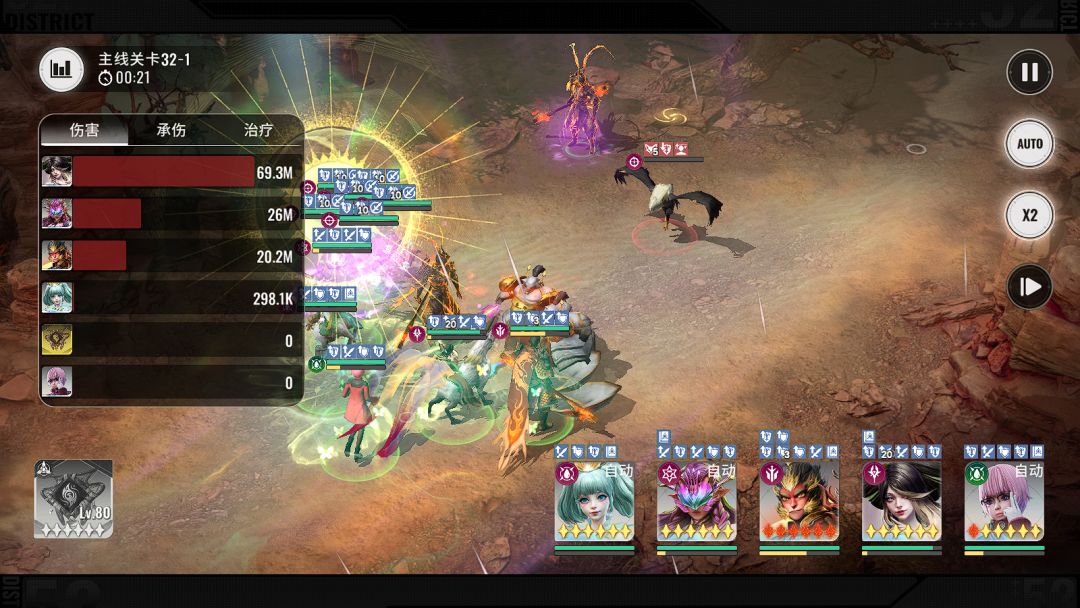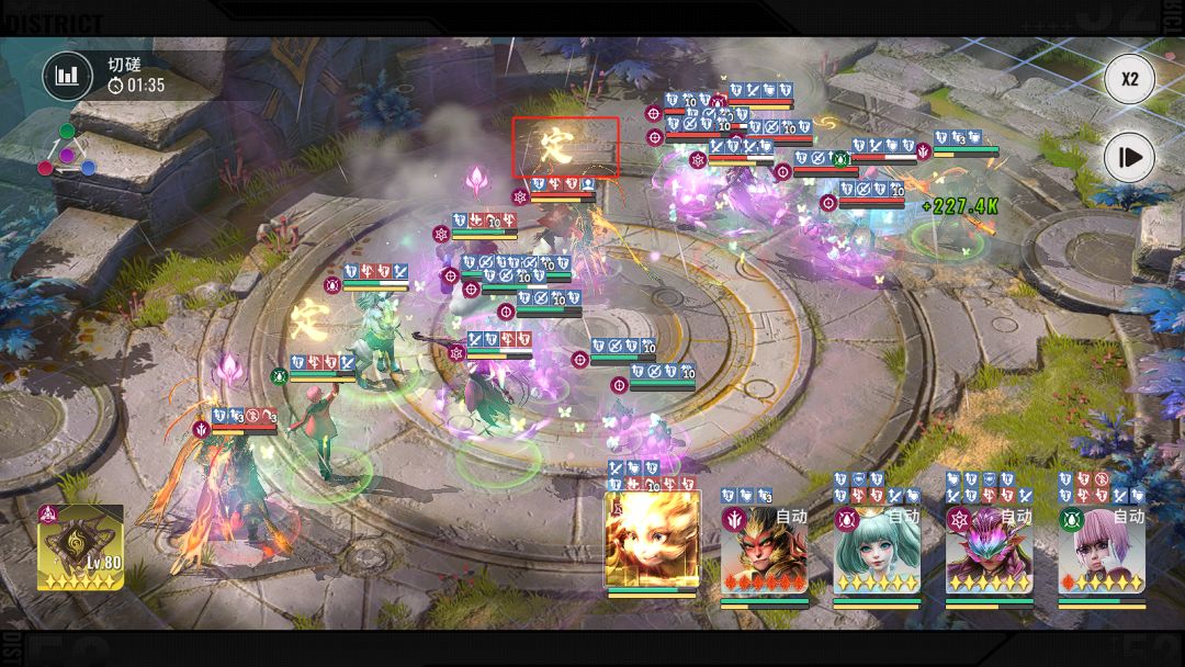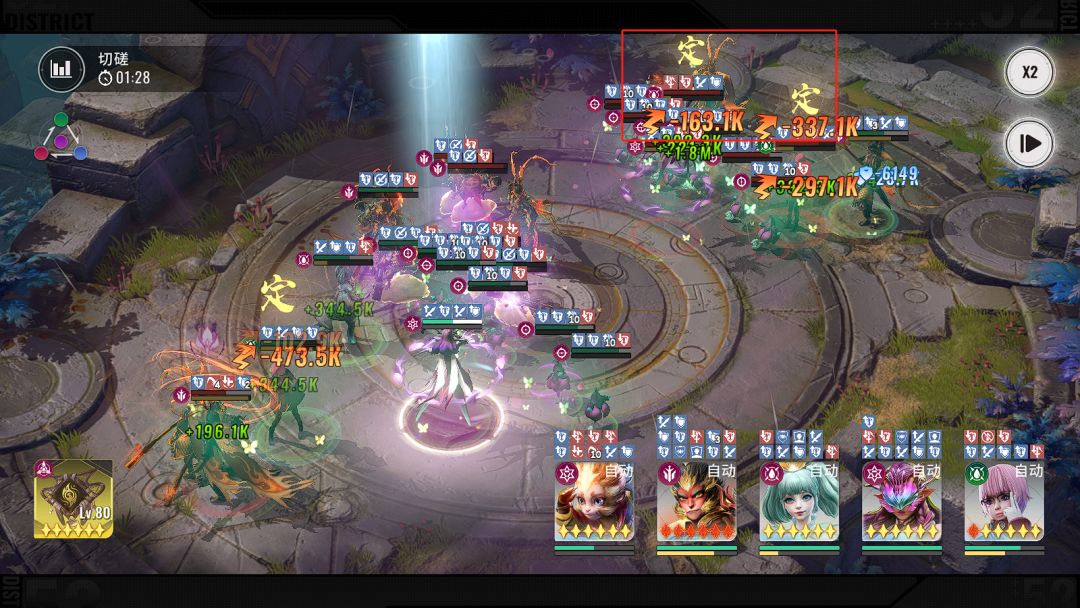 棒击大地,对范围内目标造成伤害并击晕对手2秒,同时对目标造成一次附能伤害,再额外造成一次伤害,共计为3段伤害,分身在场最多打出9段伤害,从上图可见手动释放技能,可集中一个位置打即为爆发伤害(注:此技能可被损失20%生命召唤分身打断,不确定是BUG还就这个机制,已反馈等后续)