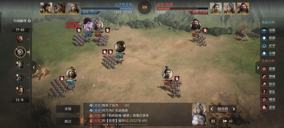 这个游戏ID名为“星痕丨恒星”的玩家朋友,他就分享出了一份自己的忠义骑以17000兵力逆转庞德、董卓和话本张角组成30000满编黑科技战队。其思路相当精巧,让人看后不禁大赞,让我们特别鸣谢他。决定胜负关键的赛点,出现在全场战斗中的第四回合。此时的忠义骑已经转守为攻,马超亲手将自己的小老弟庞德击溃。剩余在场上的话本张角和董卓,自然就没有回天之力了。星痕丨恒星是如何完成逆转的,这个配方里值得注意的细节如下。