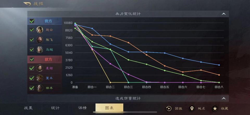 马超的轻骑兵也是直男属性拉到满,疾驰在战斗前三回合的伤害量最大,加上纵马驰矛的专精,可以判断出祋祤海防督把宝都押到了前期。