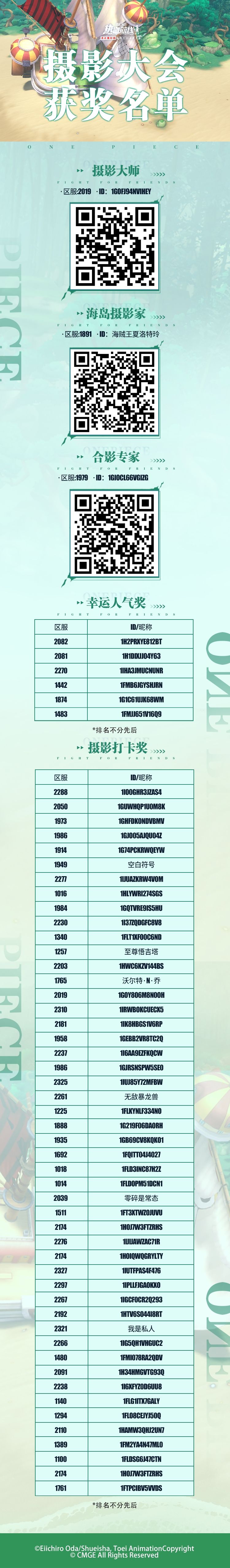 感谢船长们的精彩创作和踊跃参与!部分获奖作品可扫描下方二维码观看,相应奖励将会于即日起7-10个工作日内发放至各位获奖船长的游戏邮箱内,请船长多多留意~