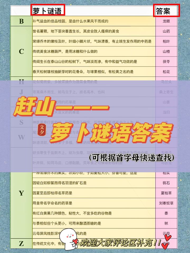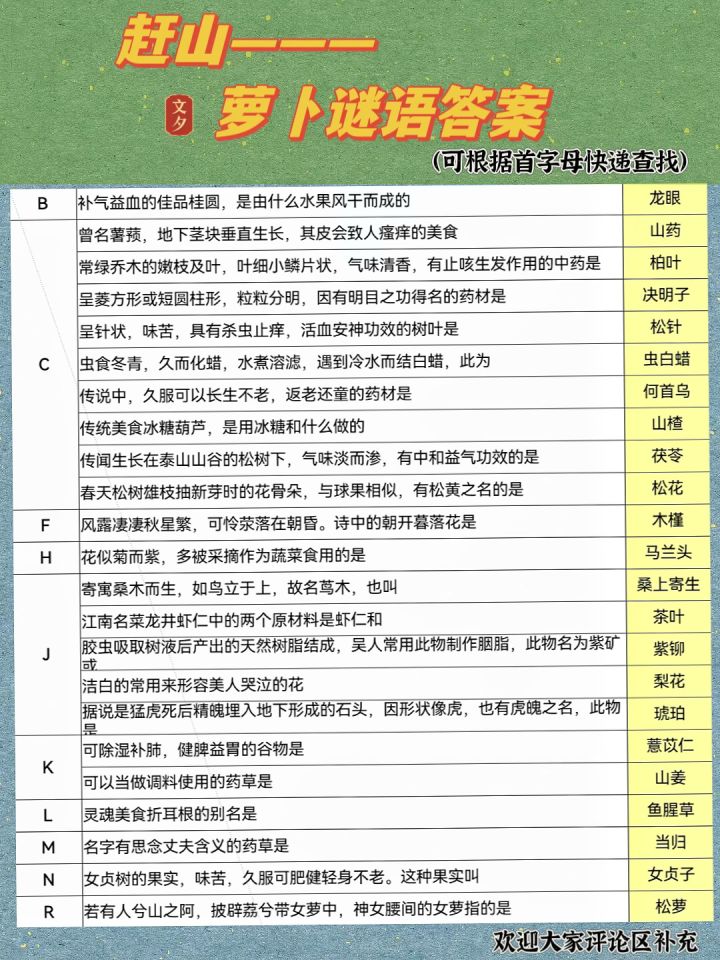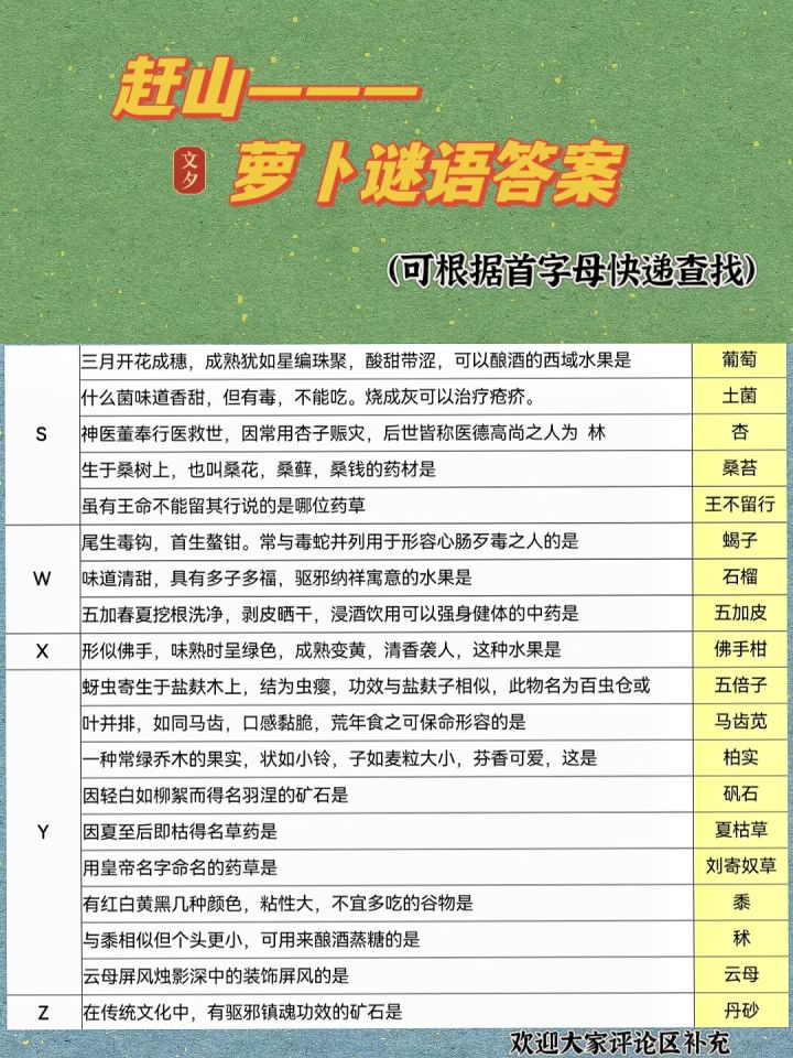 赶山—萝卜谜语答案