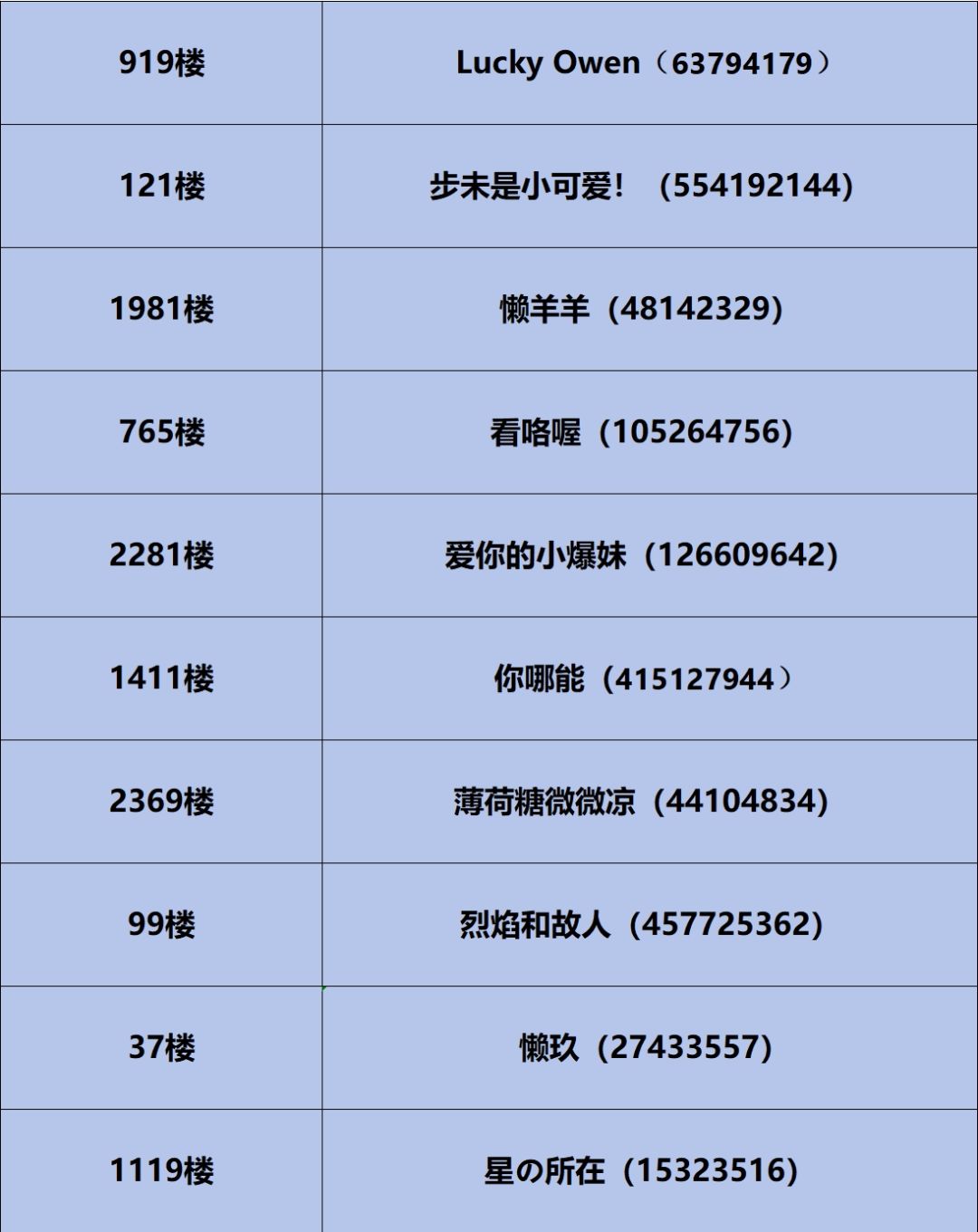 注:部分中奖的楼层因楼层消失或未满足活动参与要求,中奖资格将顺延至一下层满足活动要求的楼层。