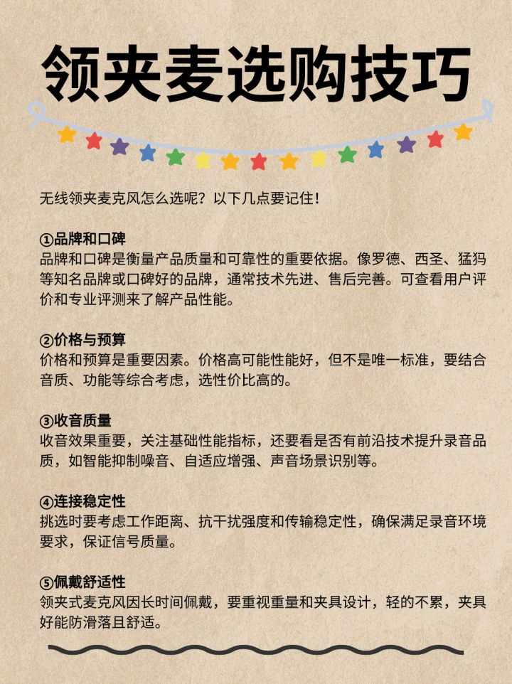 🙋♀️市面上的无线领夹麦克风品牌繁多,很多新手用户挑得眼花缭乱都不知道该怎么选,判定一款无线领夹麦克风的优劣,归根结底还是要着眼于产品本身!今天就以质量保障为前提从性能参数等方面入手,结合自己的使用经验来给大家分享一下怎么挑选无线领夹麦克风!朋友们可以根据自己的需求理性选择~
