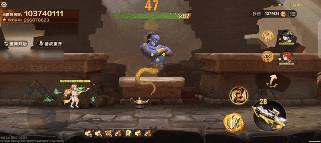 在终结技援护的支援下,缔结生命契约后的主力输出玛蒂娜上场表演,使用双持冲锋枪掌控战局,利用空间穿梭叠加增益,在裂星苍穹中气场尽显,提升额外伤害并召唤分身助阵,姐妹同心,清场易如反掌!